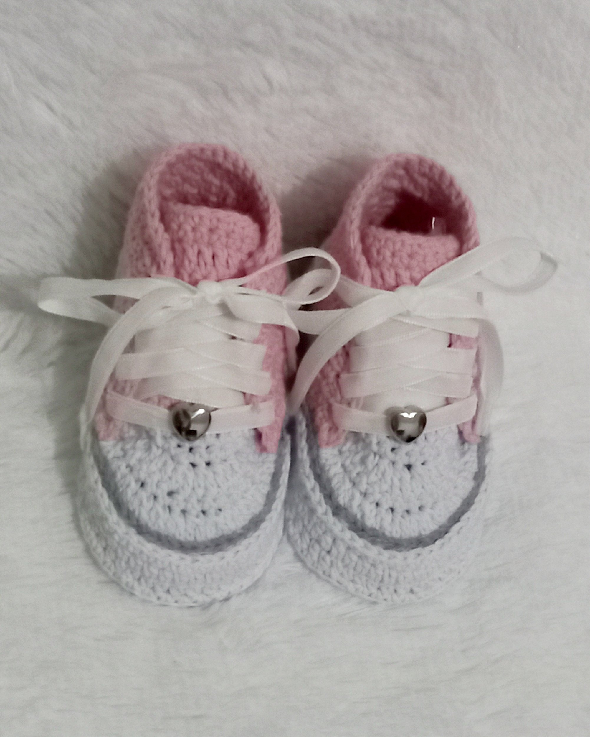 Tenis em croche para bebês até nove 9 meses, super macio e confortável, com solado emborrachado. Algumas partes do tênis são coladas.